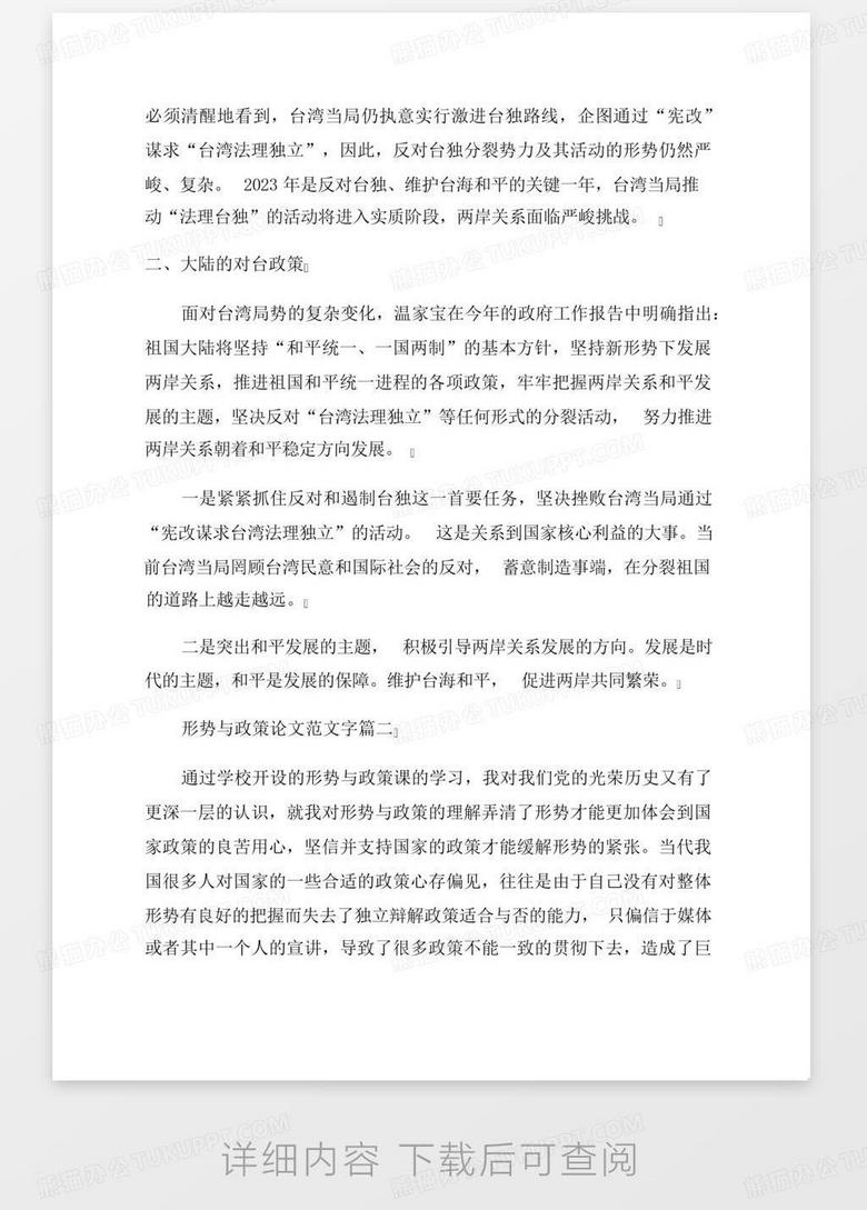 本文分析俄乌冲突形势与政策。论文探讨了俄乌冲突的起源、现状和未来走向,分析了双方的经济、政治和军事利益,以及国际社会对此冲突的回应和立场。文章指出,俄乌冲突是一个复杂的地缘政治问题,涉及到多个因素,包括领土争端、民族问题、经济因素等。在分析形势的基础上,论文还探讨了相关政策对冲突的影响,包括外交斡旋、制裁措施等。本文提出了一些对策建议,旨在促进俄乌冲突的和平解决。