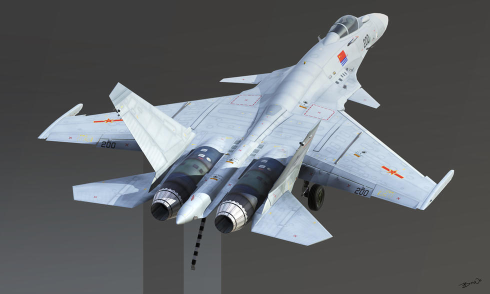 我们可以开始为战机绘制涂装,歼-15飞鲨战斗机的涂装以蓝色和白色为主,可以根据图片资料或个人喜好进行绘制,在绘制时,要注意颜色的搭配和过渡,使战机更加生动。