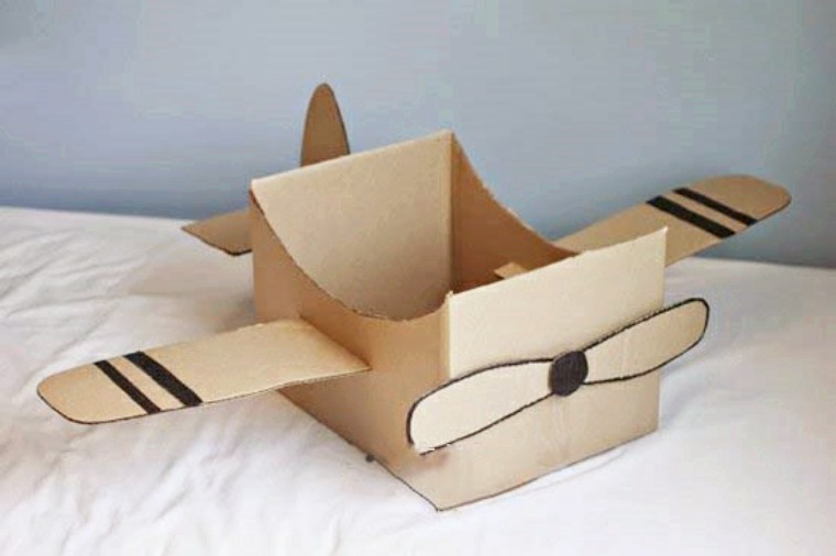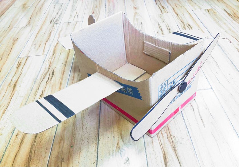 4、折叠与粘贴:将剪裁好的纸箱部件进行折叠,并使用胶带或双面胶进行粘贴,组装成飞机的各个部分。