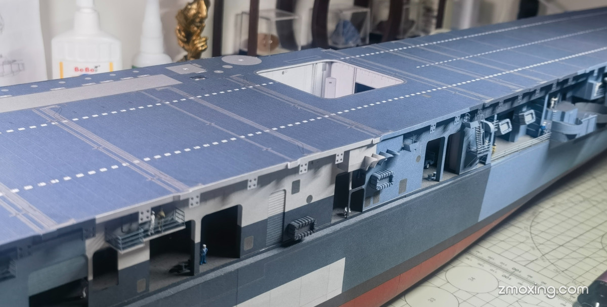 4、细节处理:在主体结构的基础上,逐步添加细节部分,如舰炮、导弹发射架、飞机起降甲板等,这些部分可以根据设计图纸进行制作,也可以根据自己的创意进行发挥。